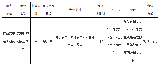 本次公開招聘實(shí)名編制工作人員4名,要求普通高等學(xué)校畢業(yè),經(jīng)濟(jì)學(xué)類、統(tǒng)計(jì)學(xué)類和環(huán)境科學(xué)與工程類專業(yè),具有碩士研究生(含)及以上學(xué)歷和學(xué)位,年齡35周歲以下(年齡截止報(bào)名首日),博士研究生或高級職稱人員年齡可放寬到40周歲以下(年齡截止報(bào)名首日)。