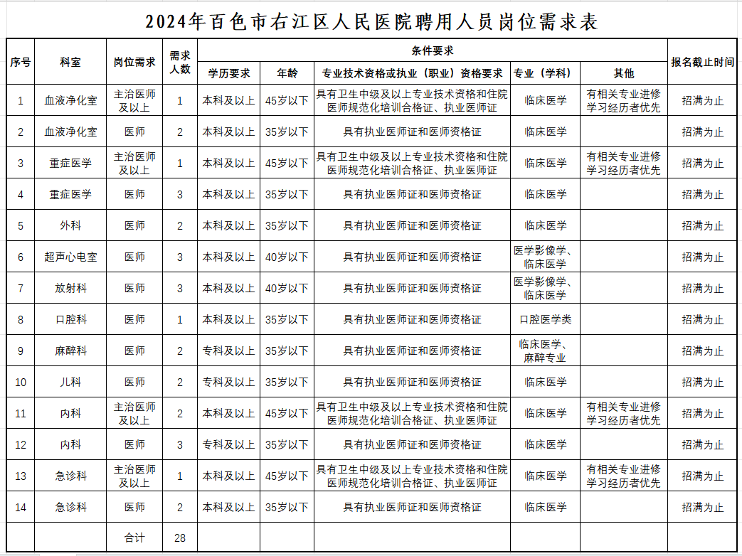 原文標(biāo)題:百色市右江區(qū)人民醫(yī)院2024年公開(kāi)招聘工作人員公告