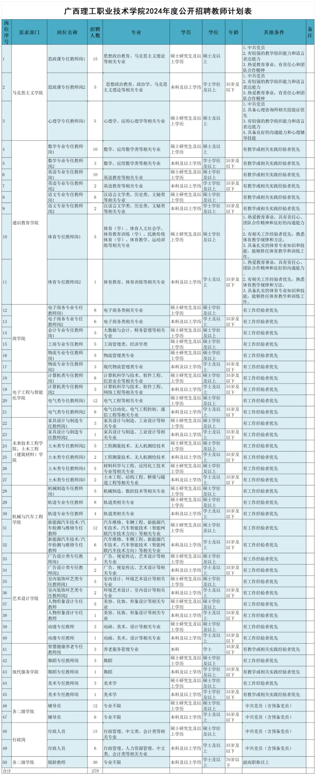 2024年廣西理工職業(yè)技術學院招聘教師279人