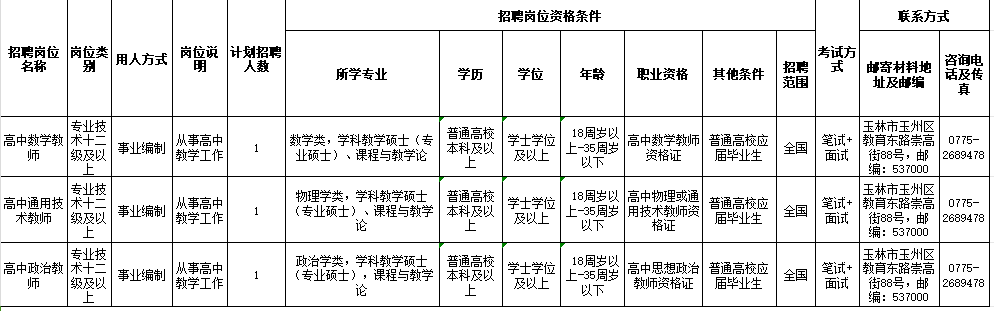 具體招聘信息請瀏覽玉林市人社局網(wǎng)站相關(guān)公告,以《2024年秋季期玉林市教育局直屬學(xué)校赴廣西師范大學(xué)公開招聘教師公告》為準(zhǔn)。