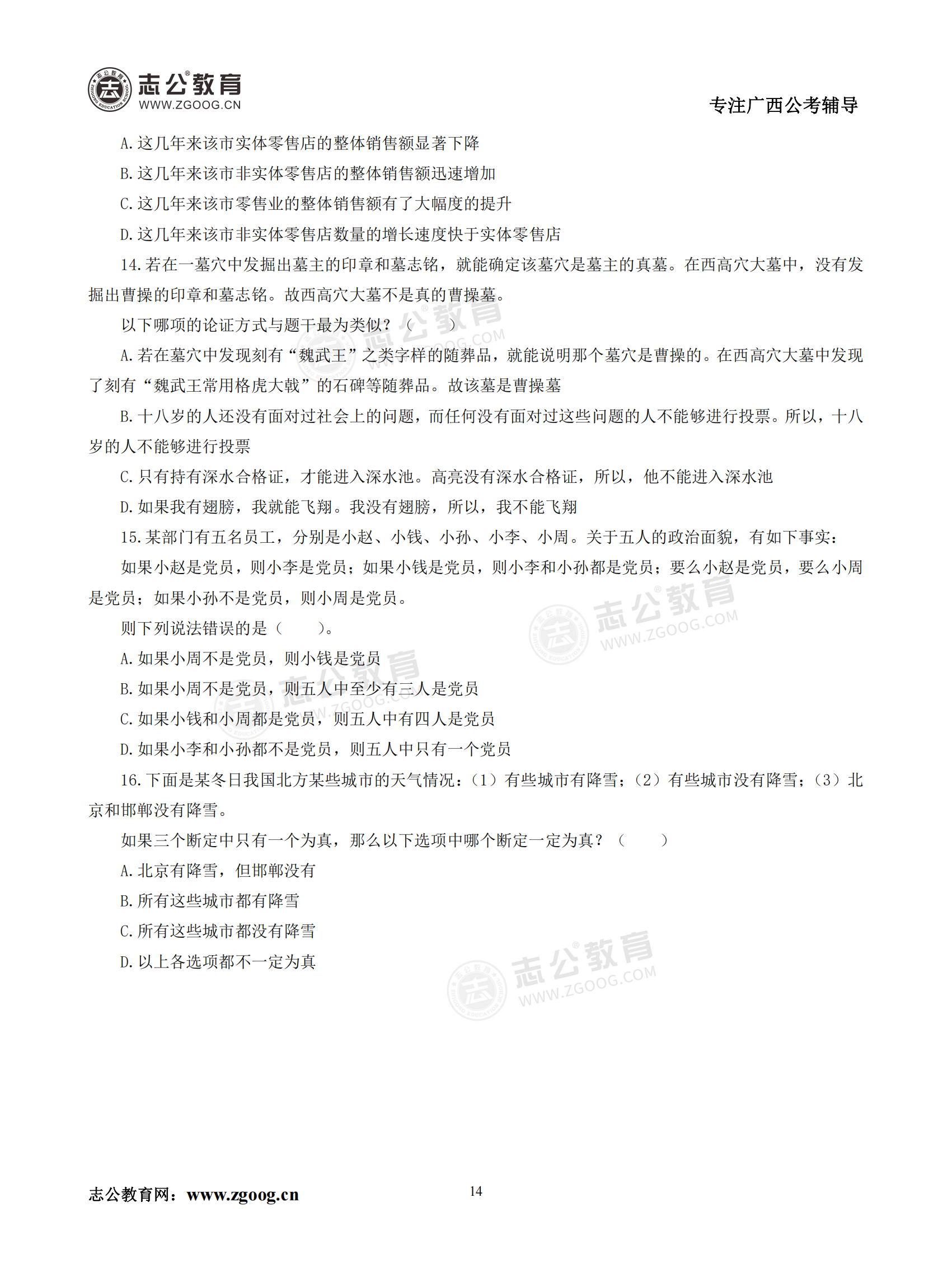 【公考模塊練習】判斷推理題三(試題)
