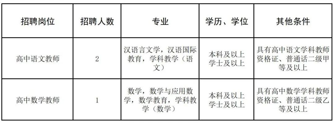 根據(jù)發(fā)展需要,學(xué)校擬招聘高中語(yǔ)文、高中數(shù)學(xué)頂崗教師共3人,具體招聘信息如下: