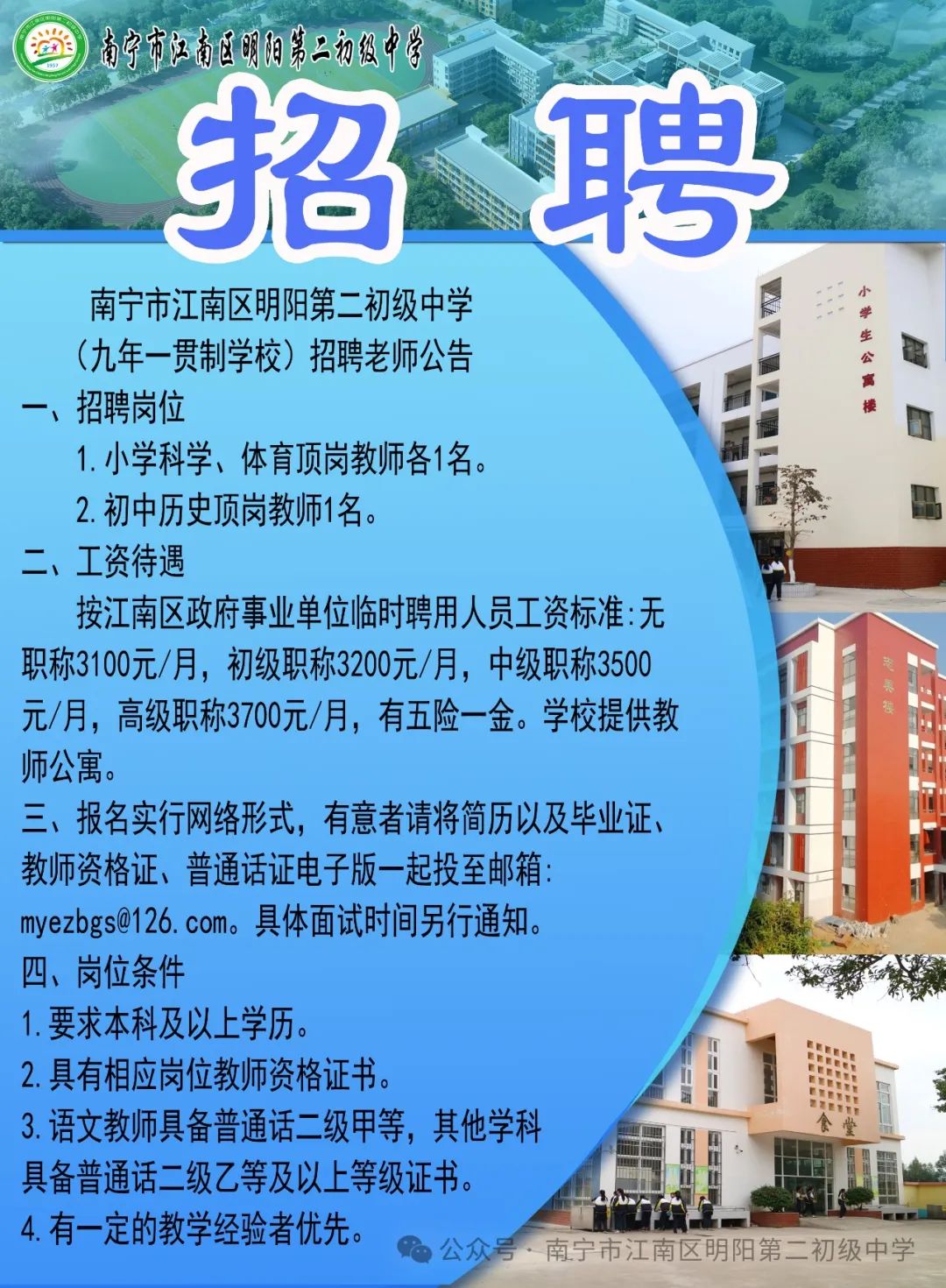 2025年南寧市江南區(qū)明陽第二初級中學(xué)招聘教師公告