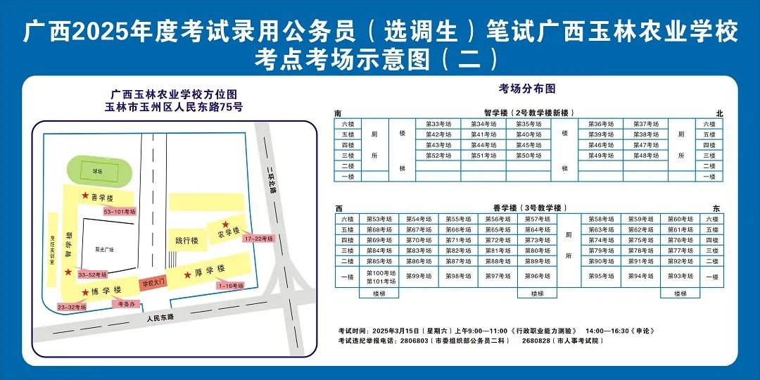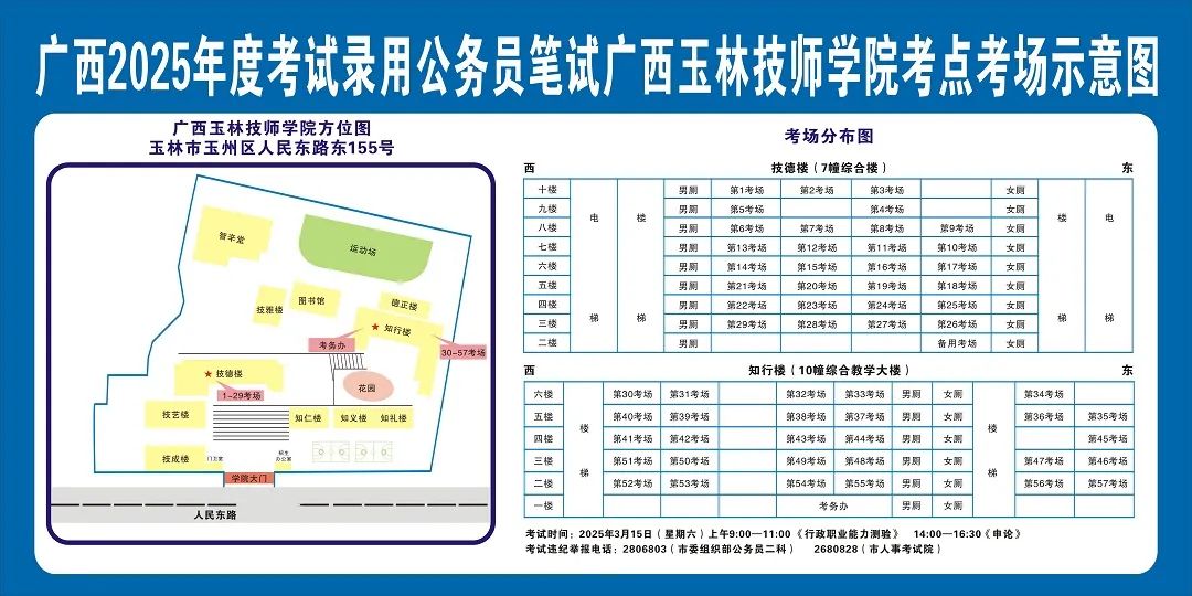 請?zhí)崆傲私獗救怂诳键c(diǎn)具體位置,熟悉考點(diǎn)周邊情況,特別是考點(diǎn)周邊的食宿、交通情況,合理做好食宿安排和出行計(jì)劃。需要特別注意的是:玉林市第一職業(yè)中等專業(yè)學(xué)??键c(diǎn)是設(shè)在該校的東校區(qū)(人民東路東235號);玉林市第一中學(xué)考點(diǎn)是設(shè)在該校的運(yùn)嶺路校區(qū)(二環(huán)北路1228號)!