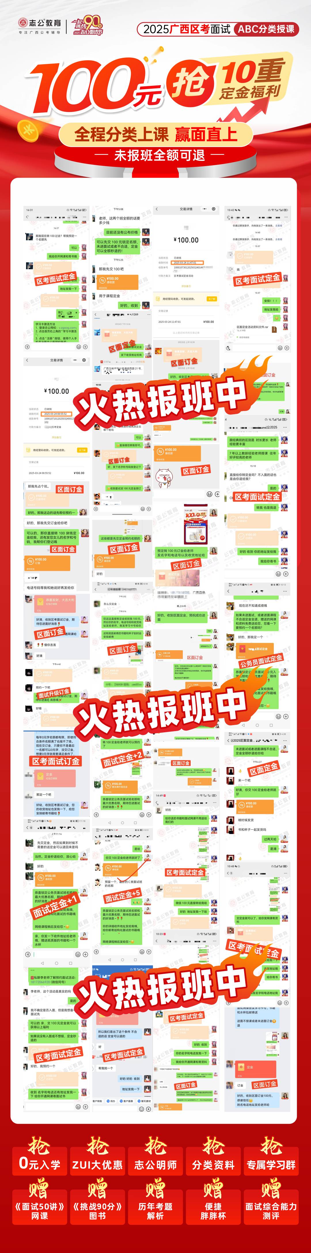首先,這個(gè)課程最大的亮點(diǎn)就是全程分類,贏面直上。啥意思呢?就是根據(jù)你的實(shí)際情況,給你定制最適合的面試課程,讓你在面試中更有把握。而且,如果你最后沒報(bào)班,這100元還能全額秒退,這得多貼心?。?/div>