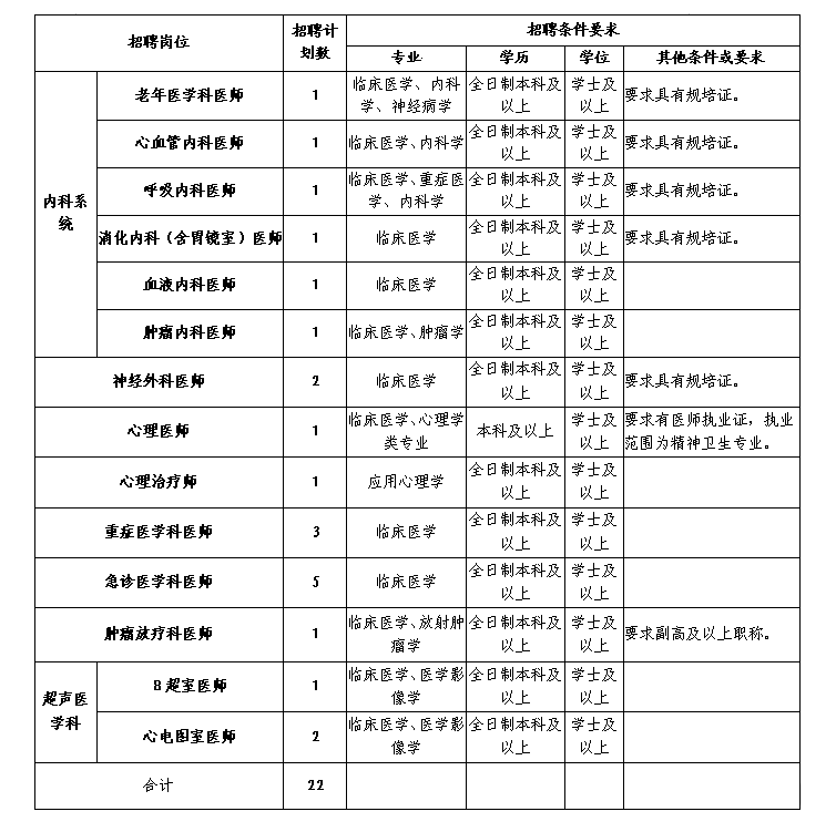 注:初中級職稱應(yīng)聘人員原則上年齡要求為35周歲及以下;如為副高以上職稱,年齡可放寬至45周歲;學(xué)歷層次高者優(yōu)先。醫(yī)師崗位中如要求具有規(guī)培證條件的是指已取得規(guī)培合格證書(含通過規(guī)培結(jié)業(yè)考試未領(lǐng)合格證書)或已取得中級及以上職稱人員。