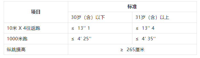 報(bào)考人員須參加全部三項(xiàng)體能測(cè)評(píng)。參加者凡有其中一項(xiàng)不達(dá)標(biāo)或放棄,視為體能測(cè)評(píng)不合格。體能測(cè)評(píng)合格,方可進(jìn)入下一環(huán)節(jié)。