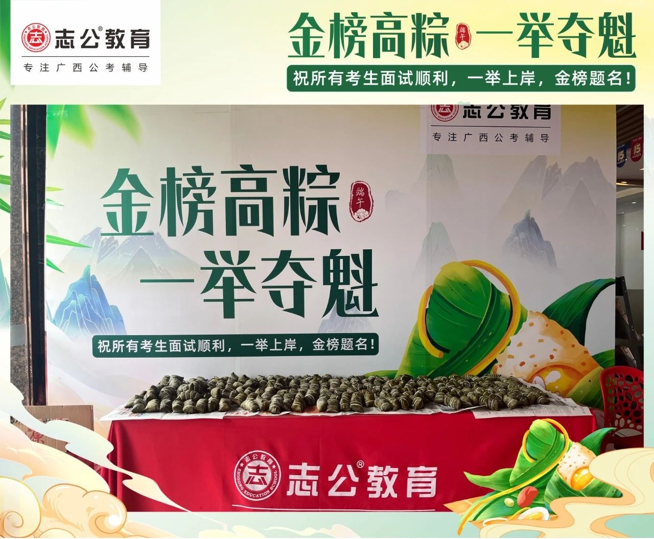 我們深知每一位學(xué)員為夢(mèng)想努力奮斗的不易。在這個(gè)端午節(jié),志公教育特別為地市學(xué)員準(zhǔn)備了剛出爐的新鮮粽子。希望大家在品嘗粽子的同時(shí),能感受到我們的支持與鼓勵(lì),在接下來的考試中一舉高 “粽”,實(shí)現(xiàn)自己的夢(mèng)想。