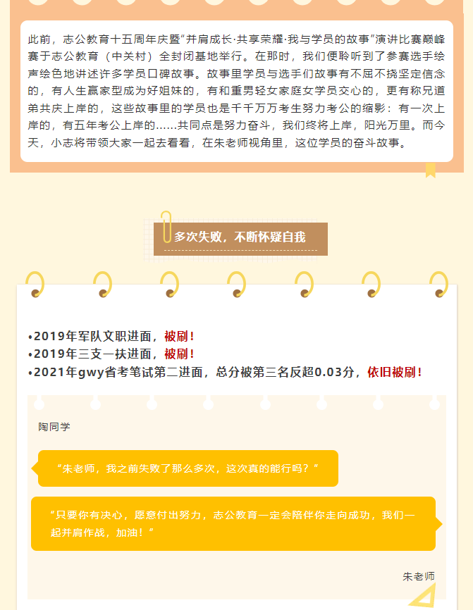 這個(gè)學(xué)員從大學(xué)本科畢業(yè)開(kāi)始,就踏上了一條充滿挑戰(zhàn)的道路。他一心想要考上選調(diào)生,這一路走來(lái),竟也花了整整五年時(shí)間。在這五年里,他始終堅(jiān)定執(zhí)著,從未放棄過(guò)自己的夢(mèng)想。