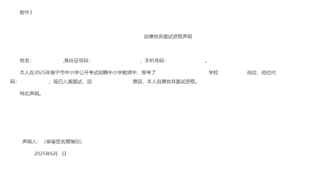 3.自愿放棄面試資格聲明(樣式)