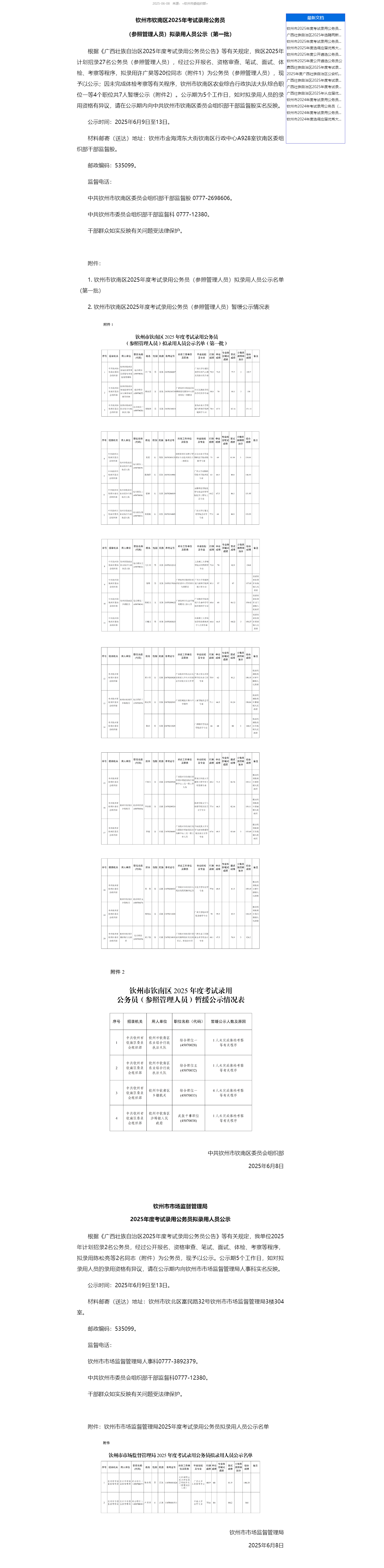 欽州市2025年度考試錄用公務(wù)員擬錄用人員公示(二)