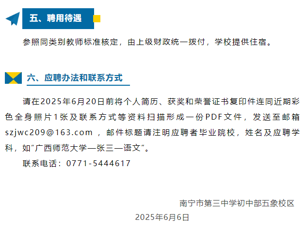 南寧市第三中學初中部五象校區(qū)2025-2026學年臨聘教師招聘啟事