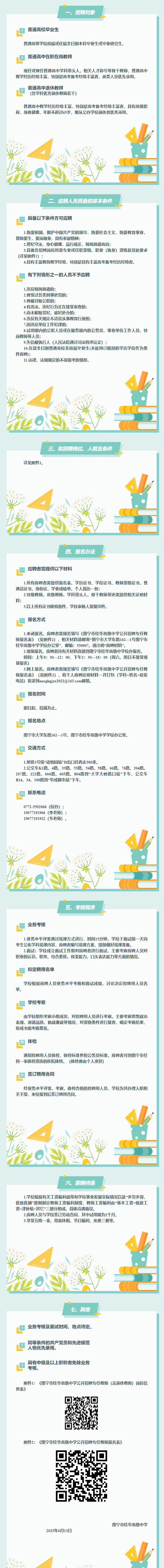 南寧市桂華高級(jí)中學(xué)2025年公開(kāi)招聘高中各學(xué)科專任教師(含退休教師)的公告