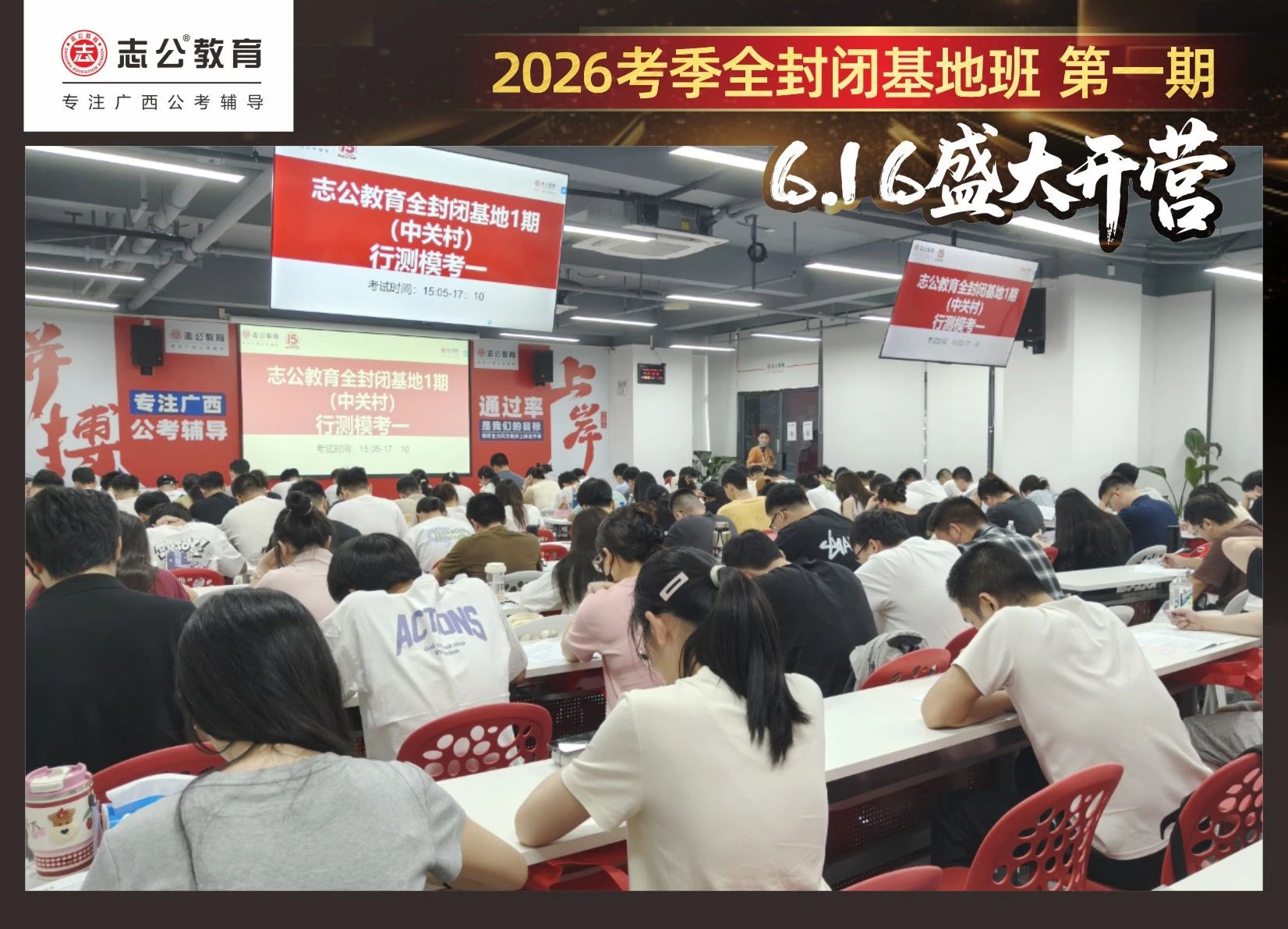 大家稍作休息之后,就是咱們期待已久的開班典禮啦!學(xué)員們在班主任的引導(dǎo)下分組就坐。大家目光灼灼,熱情高漲,迫不及待想要開啟學(xué)習(xí)模式??催@座無虛席的盛況,志公26考季全封閉基地班第1期課程實力名不虛傳,各位學(xué)員用飽滿的熱情和積極的態(tài)度迎接此次課程的開展,期待大家能夠完成自己的蛻變和成長!