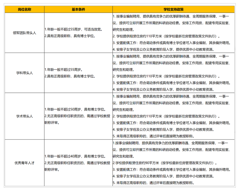 廣西大學(xué)建立了領(lǐng)軍團(tuán)隊(duì)帶頭人、學(xué)科帶頭人、學(xué)術(shù)帶頭人、優(yōu)秀青年人才等人才崗位與培養(yǎng)激勵(lì)體系,銜接國(guó)家、自治區(qū)人才計(jì)劃項(xiàng)目,為各類人才提供良好的發(fā)展平臺(tái)。引進(jìn)人才均辦理實(shí)名事業(yè)編制。