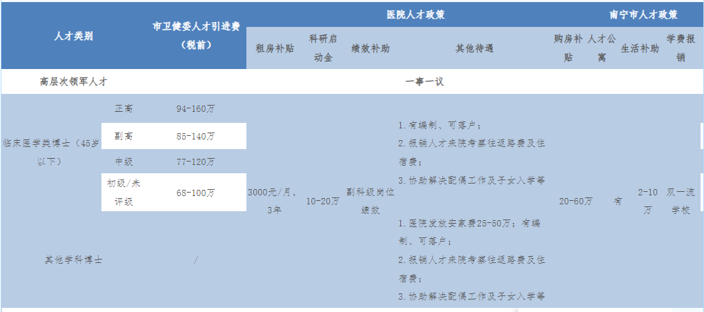 醫(yī)療衛(wèi)生相關(guān)專業(yè),擁有博士學(xué)位(含2025年應(yīng)屆畢業(yè)生)或高級(jí)職稱證;醫(yī)師崗位的人才有住培證者優(yōu)先。