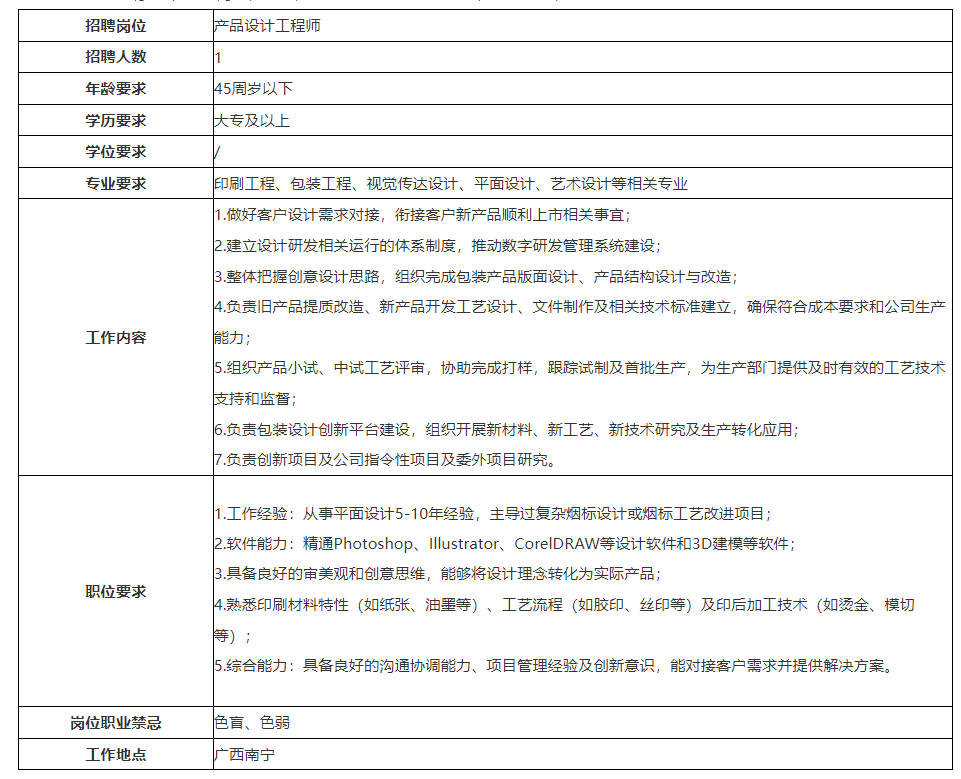 公司以創(chuàng)新引領發(fā)展,公司先后獲得“全國印刷示范企業(yè)”、“中國煙標印刷行業(yè)最具實力十大領軍企業(yè)”、“廣西制造業(yè)企業(yè)50強”,連續(xù)三年獲得“廣西優(yōu)秀企業(yè)”、“賀州市億元納稅企業(yè)”等榮譽稱號。公司秉承以人為本的理念,尊重人才、重視人才,開展員工職業(yè)發(fā)展規(guī)劃,為每一位員工提供廣闊的發(fā)展機會,充分發(fā)揮員工自主性和創(chuàng)造性。根據(jù)公司發(fā)展需要,現(xiàn)面向社會公開招聘員工。具體事項公告如下: