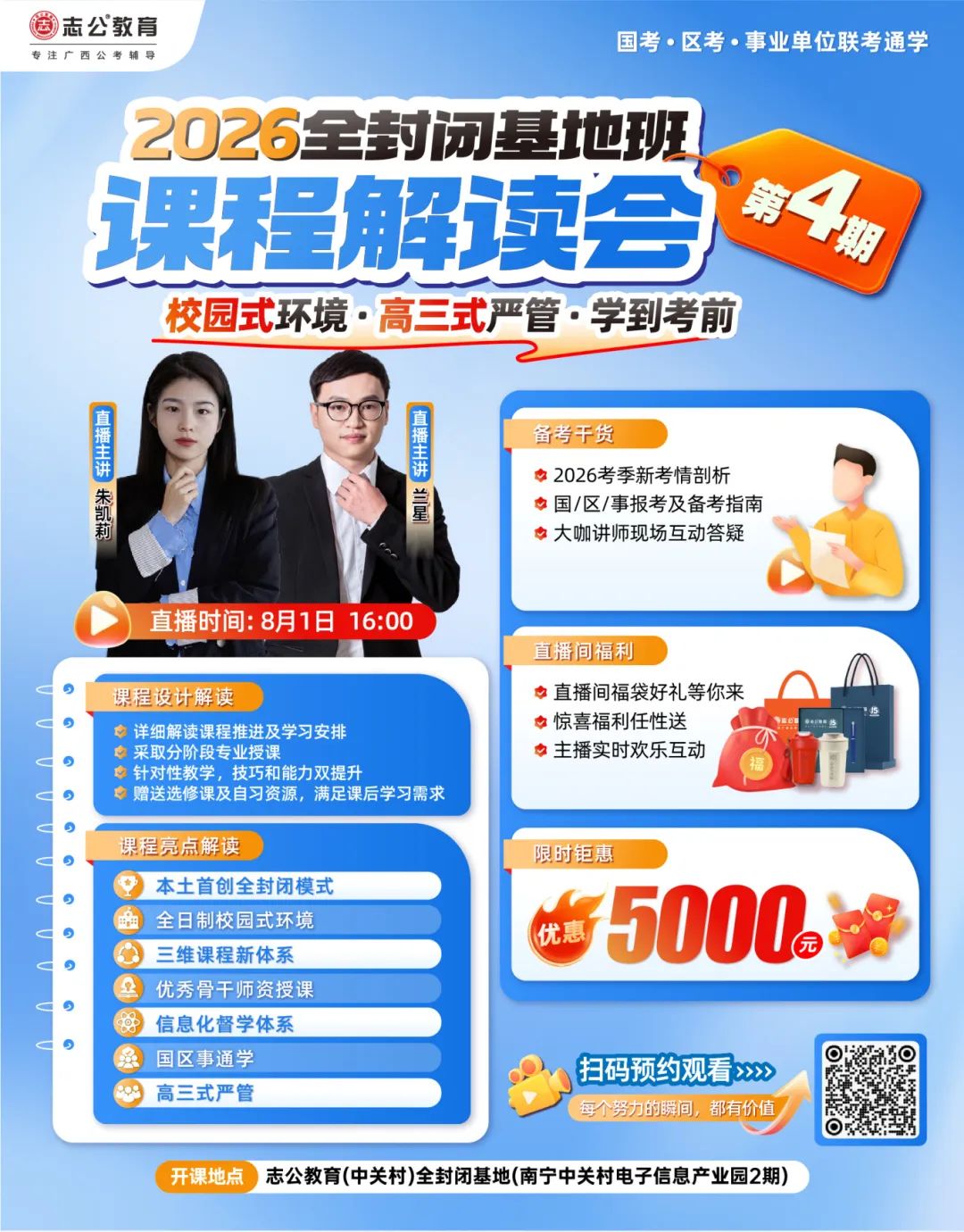 本次解讀會邀請到了朱凱莉、蘭星等資深講師。他們長期深耕公考領(lǐng)域,對廣西的公考形勢了如指掌。在解讀會上,講師們將為大家深度剖析2026考季的新考情、分享報考及備考指南,與同學們進行現(xiàn)場互動,更重要的是進行2026年全封閉基地班第4期課程設(shè)計解讀!讓你在備考之初就搶占先機。????
