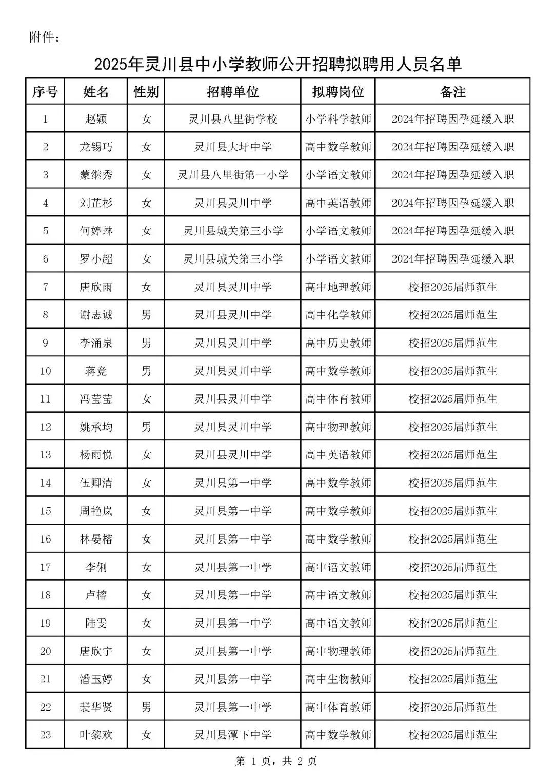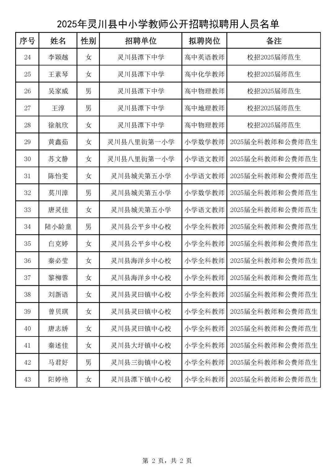 附件:2025年靈川縣中小學(xué)教師公開招聘擬聘用人員名單