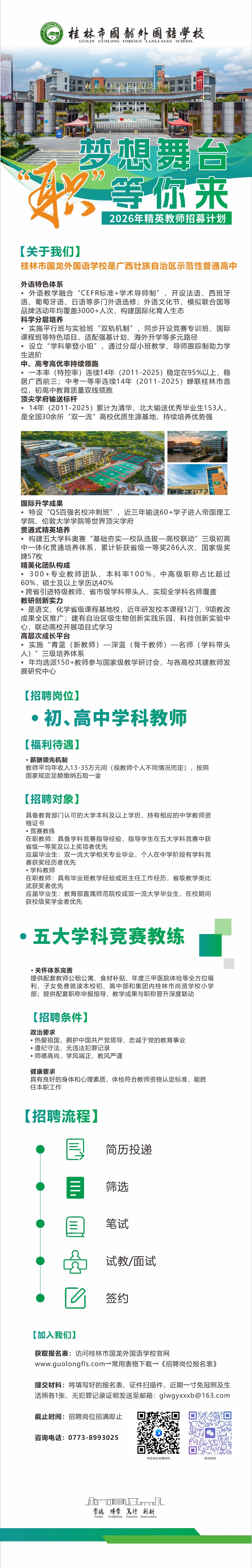 原文標(biāo)題:桂林市國(guó)龍外國(guó)語(yǔ)學(xué)校2026年精英教師招募計(jì)劃