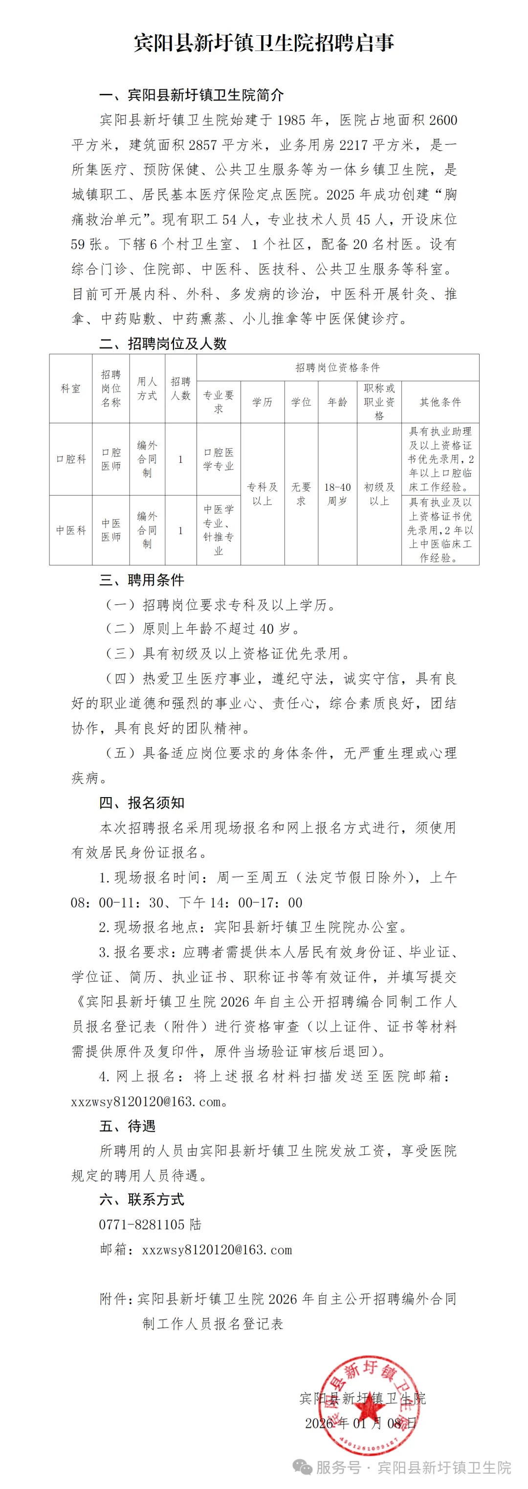 2026年賓陽縣新圩鎮(zhèn)衛(wèi)生院衛(wèi)生專業(yè)技術(shù)人員招聘簡介