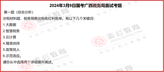 1??綜合分析題:不是泛泛而談的社會熱點,而是緊扣稅務(wù)新政 —— 比如 “稅收紅利賬單” 題,要求從 “大數(shù)據(jù)”“政策找人” 等稅務(wù)專屬關(guān)鍵詞中選2個闡述,既考察對稅務(wù)數(shù)字化轉(zhuǎn)型的理解,也考驗邏輯提煉能力