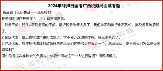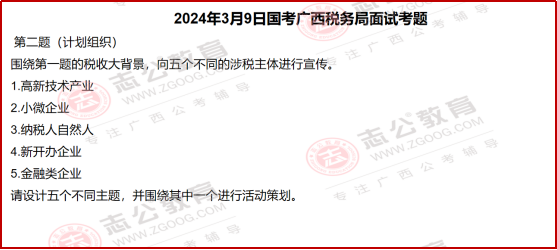 國考面試?yán)?,稅?wù)系統(tǒng)的題目一直有個很明顯的特點,就是緊跟國家政策、貼近實際工作。尤其是2024年廣西稅務(wù)局的面試題,把這個特點體現(xiàn)得特別透徹??催@些題目,既能知道稅務(wù)工作實際需要什么樣的人、做什么樣的事,也能清楚面試到底要考察我們哪些核心能力。今天小志就帶大家了解一下,國考中稅務(wù)系統(tǒng)面試一些相關(guān)信息解讀: