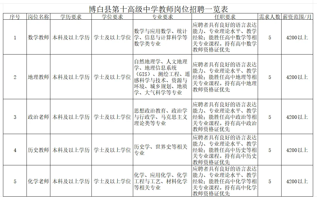 原文標(biāo)題:博白縣第十高級(jí)中學(xué)2026年教師招聘啟事
