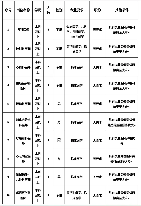 (三)面試時間及所需材料:資格審查通過后,即組織面試,時間以正式通知為準,不入圍者,不另行通知。面試時需攜帶身份證、畢業(yè)證、執(zhí)業(yè)證、資格證等原件進行核驗。