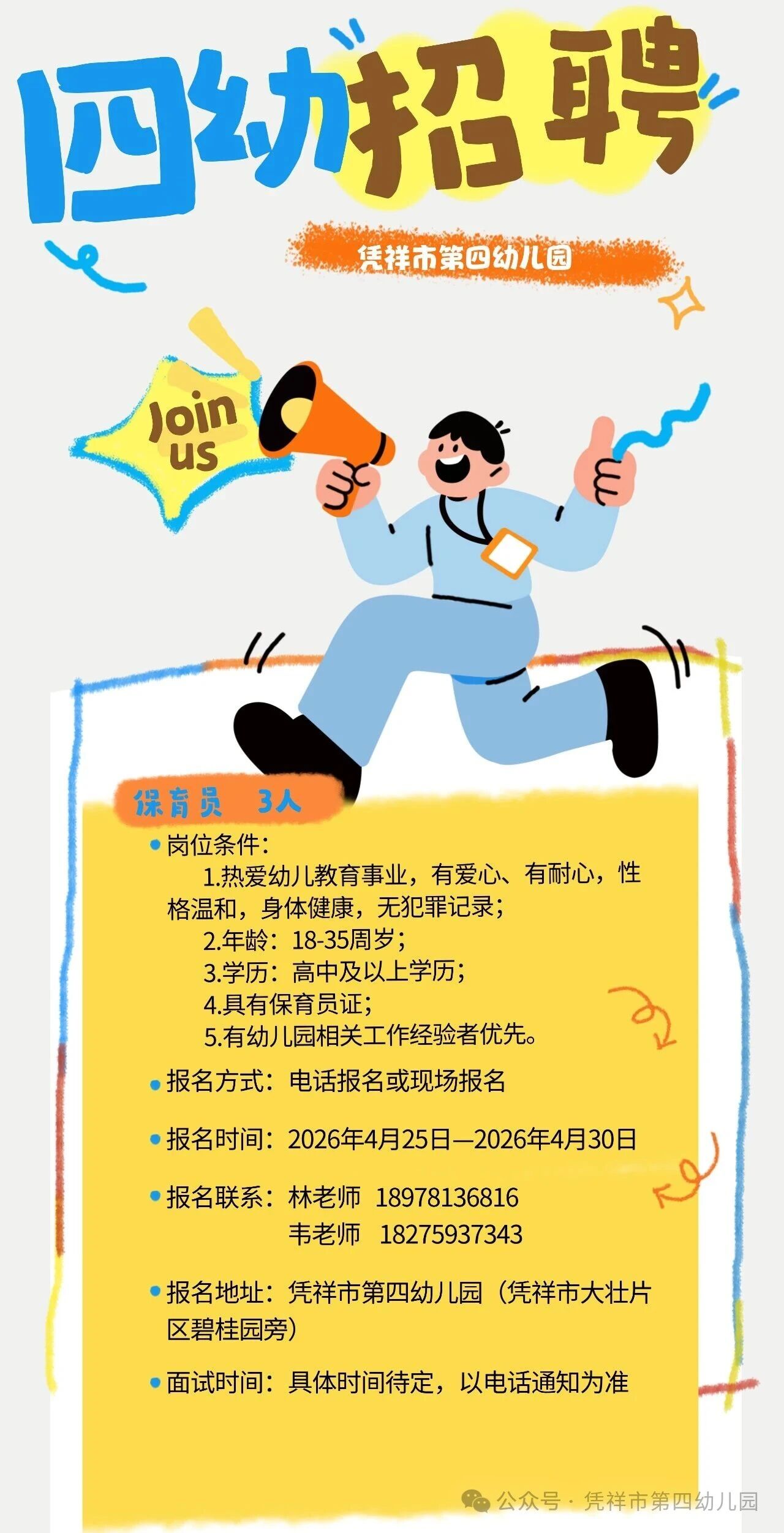2026年崇左憑祥市第四幼兒園招聘保育員3人